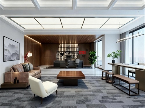 该办公楼装修设计开放与私密并存,功能与美学共生。大厅装修设计中,其大面积玻璃幕墙引入城市景观,让视野与灵感一同舒展;办公区与会客区,其简洁的线条与温润的材质相互平衡,营造出克制而不失温度的现代办公楼装修设计氛围。