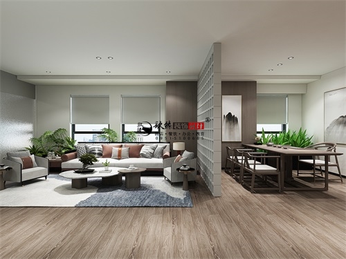 今天分享的是宁夏中清餐饮集团办公室设计装修效果图,这家餐饮集团的办公室装修风格,将现代简约美学与新中式元素巧妙融合,在呈现商务质感的同时,也赋予空间浓厚的人文温度。下文将从空间布局、材质运用、色彩搭配、功能分区等维度,对其设计亮点展开分析。单就空间布局而言,整体设计通透且富有灵动性,功能分区清晰明确,采用“开放式+半开放式”结合的规划逻辑。入口处的大理石立柱不仅成为视觉核心,在划分区域的同时,也确保了空间的通透感;办公区中部的格栅隔断,则巧妙分隔休闲区与洽谈区,既维持了办公室空间的整体连贯性,又借助虚实对比营造出丰富层次,精准匹配现代办公场景下“互动交流与独立办公”的双重需求。
